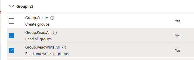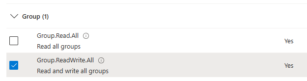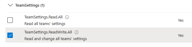 | Microsoft Teams | Microsoft Graph | Directory.Read.All | Application and Delegated |