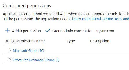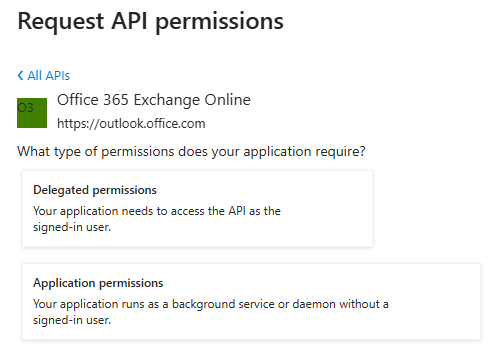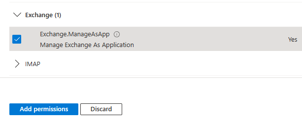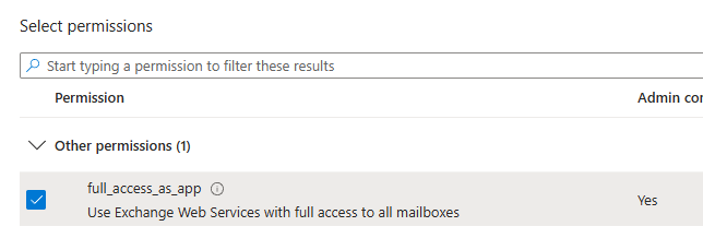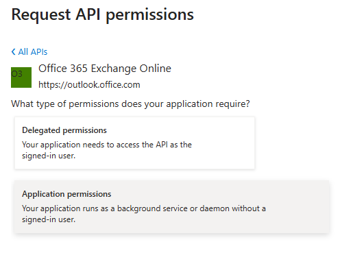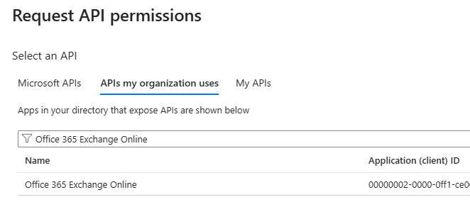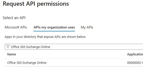 | Office 365 Exchange Online | full_access_as_app | Application | |
