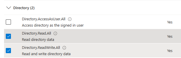| Directory.ReadWrite.All | Application and Delegated | ||