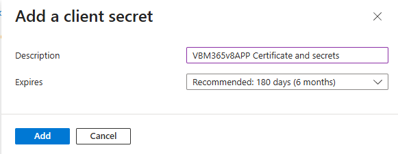 84. Copy the Value, it will be needed for the Application secret of Veeam Backup for Microsoft 365 settings.