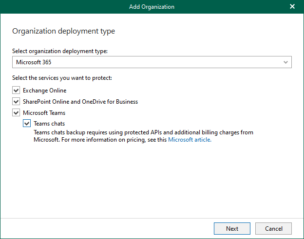 88. Select Microsoft 365 as the organization type on the Organization deployment type, select all services you want to protect and click Next.