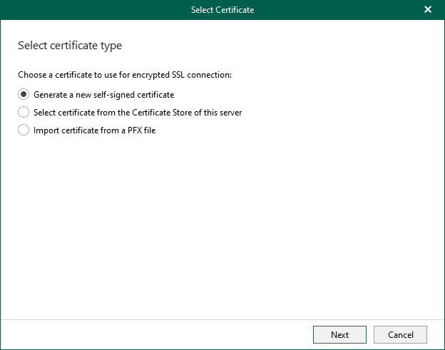 94. Select Generate a new self-signed certificate on the Select certificate type page and click Next.