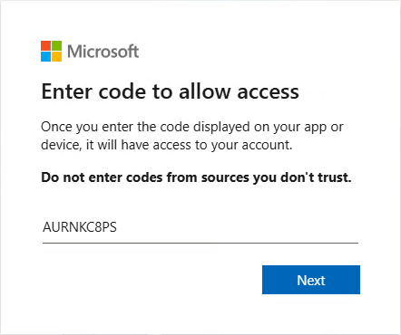 100. Enter your account name on the Sign in page and click Next. Ensure to sign in with the Global Administrator role’s user account.