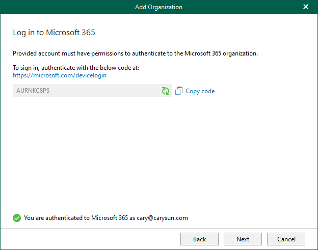 If you want to back up public folder mailboxes, this user account must have the Owner role, a valid Exchange Online license, and an active mailbox within the Microsoft 365 organization.