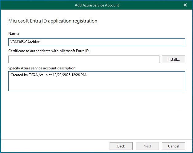 67. On the Backup proxy page, select Use an archiver appliance to copy data to this repository and click Add to specify account credentials to connect to Microsoft Azure.