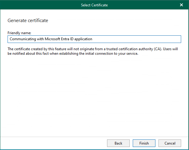 72. On the Generate certificate page, type certificate name in the Friendly name field and click Finish.