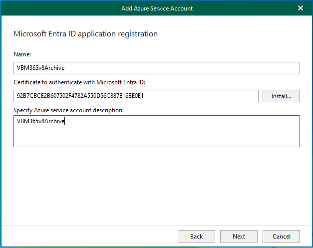 70. Click Install in the Certificate to authenticate with Microsoft Entra ID field.
