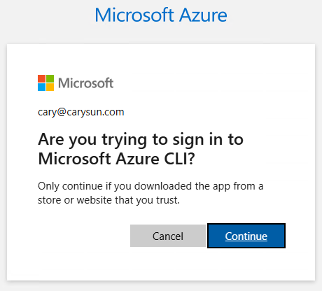 79. Click Continue to sign in to Microsoft Azure CLI.