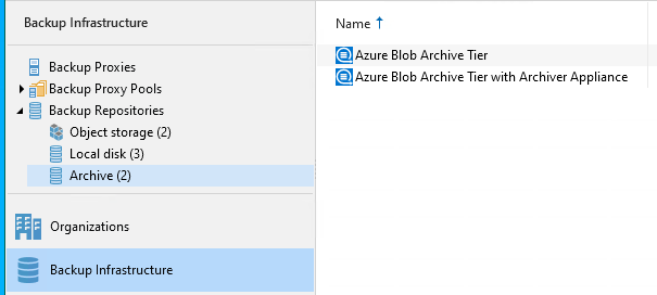 103. Verify that the new Azure Blob Archive Tier Repository has been added.