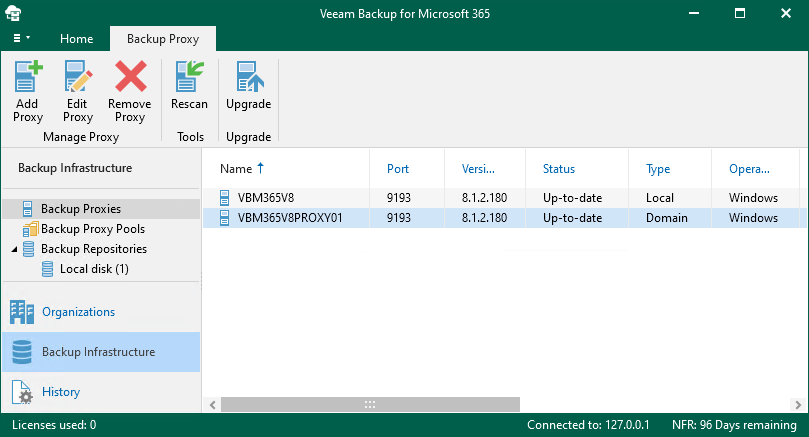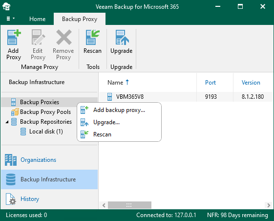 4. On the Backup Infrastructure page, right-click Backup Proxies and select Add backup proxy.