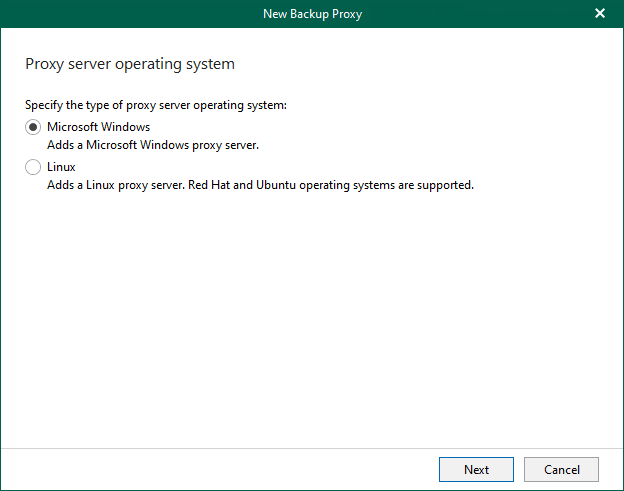 5. Select Microsoft Windows on the Proxy server operating system page and click Next.