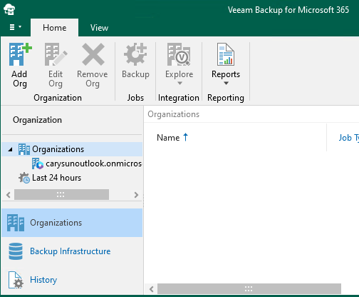 3. Select Backup Infrastructure on the Veeam Backup for Microsoft 365 console page.