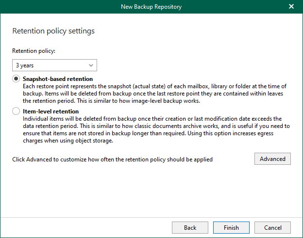 5. On the Backup repository name and description page, enter the backup repository name in the Name field and click Next.