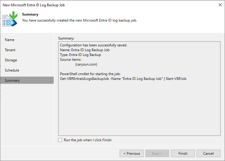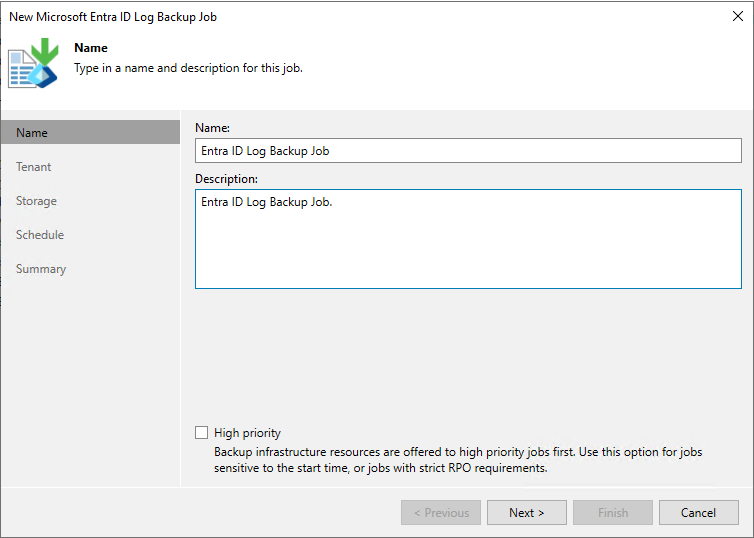 7. Enter the Entra ID Log backup job description in the Description field and click Next.