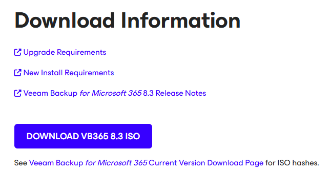 2.Sign in to your Veeam account and download the Veeam Backup for Microsoft 365 v8.3.0.2201 ISO image.