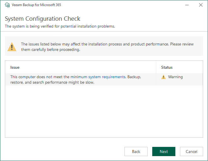 12.Please ensure the Veeam Backup for Microsoft 365 manager server meets the minimum system requirements.
