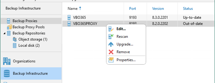 17.Right-click the out-of-date Proxy servers and select Upgrade.