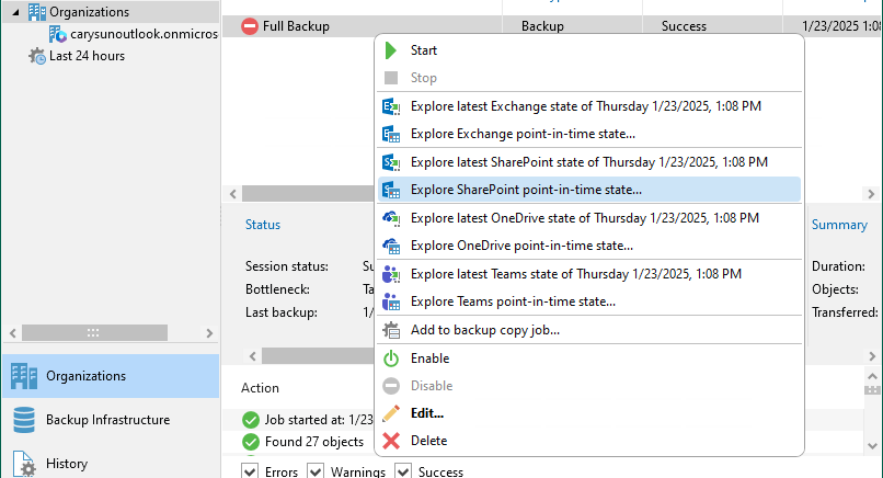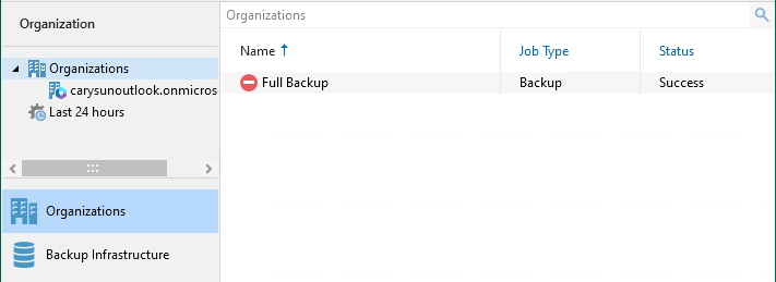 22.Select Organizations on the Veeam Backup for Microsoft 365 console.