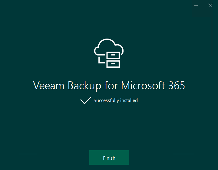 35.Click Finish on the Veeam Backup for Microsoft 365 Successfully installed page.