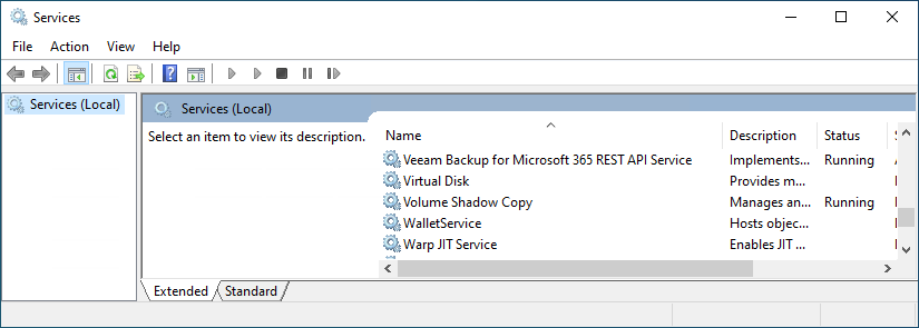 36.Check and ensure the Veeam Backup for Microsoft 365 REST API service is running.