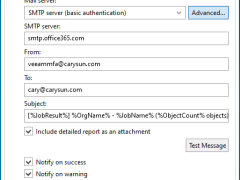 You can configure Microsoft 365 with an MFA-enabled account for notification settings. This can be used to send email notifications about backup job results.