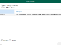 The upgrade failed because the SSH public key fingerprint of the Linux proxy does not match Veeam’s expectations. This typically happens when the proxy’s SSH keys are changed, the server is rebuilt, or the fingerprint stored in Veeam is outdated.